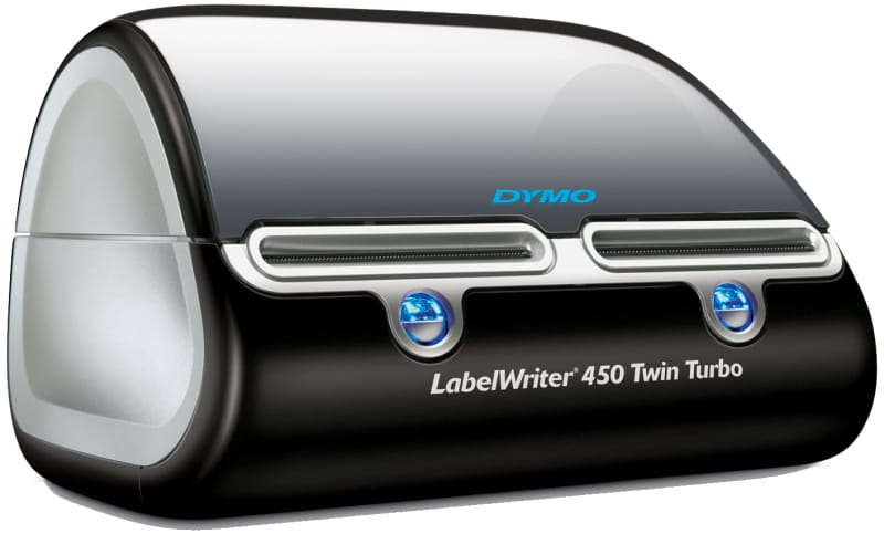 Zwiększona wydajność etykietowania i obsługi poczty. Drukarka DYMO® LabelWriter™ 450 Twin Tubo mieści w sobie dwie rolki etykiet, umożliwiając etykietowanie większej liczby elementów i obsłużenie większej ilości poczty w krótszym czasie. Dzięki temu możesz drukować etykiety adresowe bez konieczności wymiany rolek. Drukarka DYMO® LabelWriter™ 450 Twin Turbo jest też świetna do drukowania dużych partii etykiet – wystarczy załadować dwie identyczne rolki, a urządzenie automatycznie przełączy się na drugą rolkę po zużyciu pierwszej. Drukowanie do 71* etykiet na minutę. Pożegnaj się z koniecznością wycinania etykiet z arkuszy, a także z przymusem zakupu drogiego tuszu lub tonera. To nie wszystko – oprogramowanie dołączone do zestawu umożliwia drukowanie etykiet bezpośrednio z popularnych programów, a także oferuje wiele innych funkcji. *4-line address label.